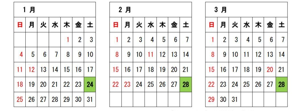 但し、1月~3月は第4土曜日のみ