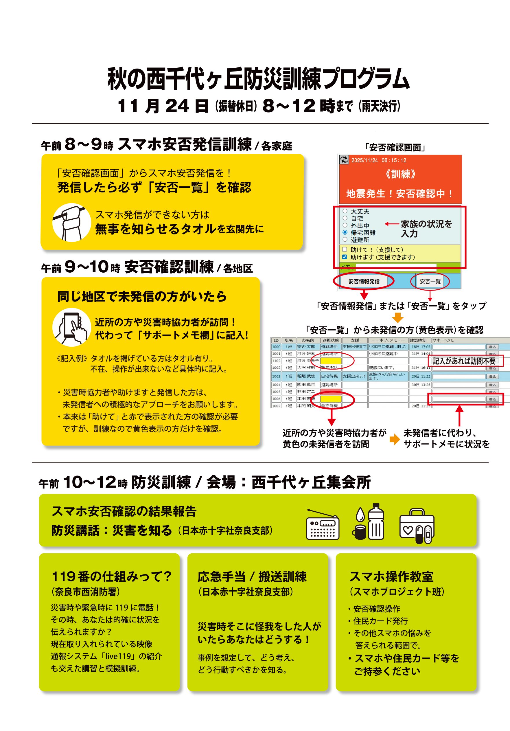 秋の西千代ヶ丘防災訓練ちらし