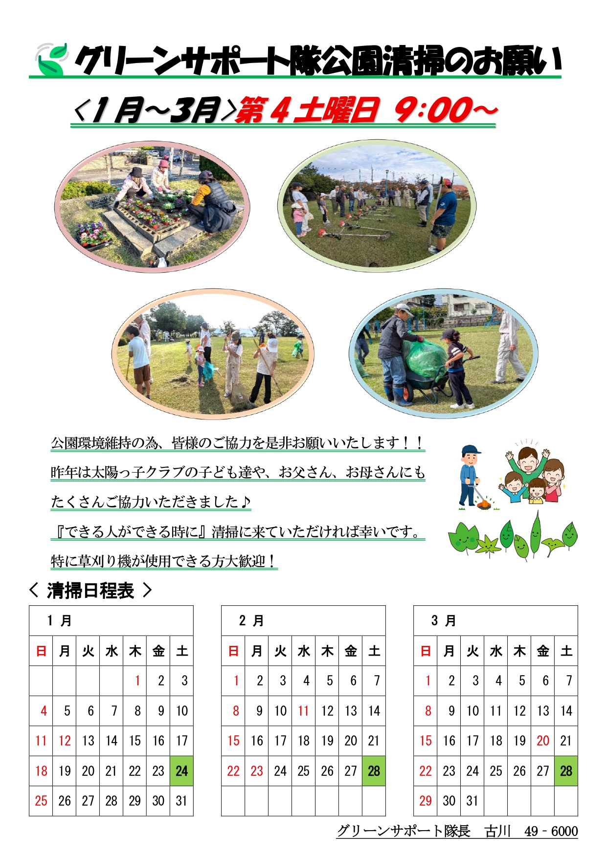 1月~3月の活動予定です。是非参加よろしくお願いします。