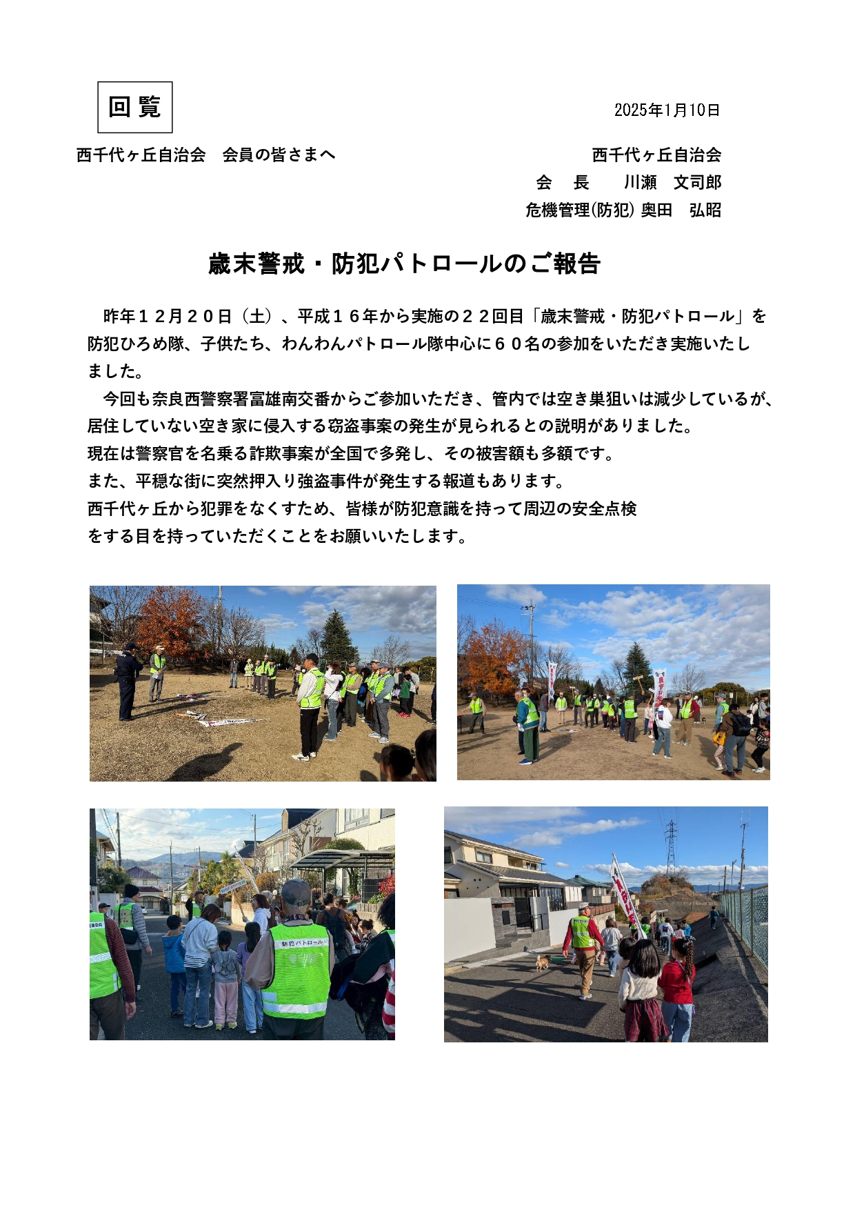 12月20日(土)、22回目の「歳末警戒・防犯パトロール」を約60名の参加をいただき実施しました。